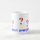 Fragezeichen in rot. 5 sind um die Tasse verteilt. Unten ist der Text in blau "Fragen Sie alles"