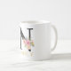 Letter N Monogramm mit Aquarellfarben-Blume und Blätter auf einem schwarzen Buchstaben. Perfekt für persönliche und geschenkte Zwecke mit Namenspersonalisierung.