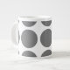 Mignonne et tendance Big Pois Jumbo Mug. Ce design présente des pois grand cercle surdimensionnés en gris et blanc. Un texte peut être ajouté à cette conception pour lui donner une touche personnelle.