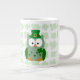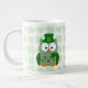Joli hibou adorable avec son petit casquette leprechaun dans les tons vert foncé et clair, avec une boucle jaune. Cet oiseau est prêt à fêter la Saint-patrick avec style. Vert sur vert avec un arrière - plan shamrock clair. Idéal pour les amateurs d'animaux et les collectionneurs de chouettes. Copyright © 2013 www.CuteComfy.com