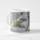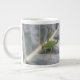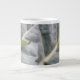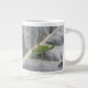 Cette énorme tasse présente une photo détaillée d'une grande femelle de cricket vert sur la feuille d'un plante de brocoli. La photographie a été prise en utilisant la macro photographie pour montrer cet insecte fascinant et son environnement dans les moindres détails.
