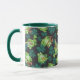 Blanc et vert chasseur 11 oz. une tasse combo avec une image de shamrocks vert foncé et de grenouilles vertes géantes, certaines juste assise, d'autres jouant du violon, et d'autres buvant de la bière, sur du noir. Voir la bocal à bonbons, tasse à expresso, flacon, lanceur, plaque en papier, théière et dessous de verre. Voir toute la collection de Mug de la Saint-Patrick dans le FOOD/BEV | Section Plats.