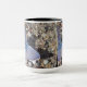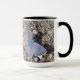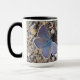 Grossaufnahme eines blauen Schmetterlings (Bläulings) auf grauen Steinchen das Design dieser Tasse, hier mit schwarzem Henkel und Rand. Die Grösse der Tasse und die Farbe für Henkel, Rand und Innenseite sind bar.
