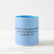 Eine Tasse, die ein hadith vom Imam Ali hat, gefärbt im Blau.