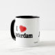 J'aime Amsterdam ! Êtes-vous d'Amsterdam, Pays-Bas ? Avez-vous un ami ou un membre de la famille qui aiment Amsterdam, Pays-Bas ? Si oui, ceci "j'aime" la tasse II qui montre que l'amour pour Amsterdam est exactement le cadeau que vous recherchez ! Les caractéristiques de conception la lettre "je" dans le lettrage noir avec un coeur rouge sur le dessus et "Amsterdam" dans le lettrage noir sur le fond.