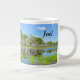 Die Natur reflektiert die Jumbo-Tasse mit einem Fluss, Bäume und Wolken reflektiert im Wasser. Das Bild wurde in SW Florida, USA, in einem Naturschutzgebiet aufgenommen. Der Name auf der Tasse kann geändert werden.