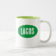 Eine schöne, grüne und weiße Tasse, die Lagos auf ihr sagt. Lagos ist Nigerias größte Stadt. Diese Tasse wird durch die nigerianische Flagge inspiriert.