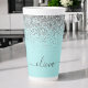 Tasse Latte Aqua Blue Teal Argent Paillettes Monogramme