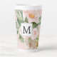 Tasse Latte Aquarelle moderne Fleurs roses Monogrammes
