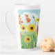 Tasse Latte Belles Fleurs Jaunes Ciel Bleu et Papillon