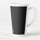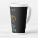 Tasse en latte personnalisée pour les amateurs de bingo, avec des graphismes de ligne Bingo jaune et bleu néon sur arrière - plan noir.