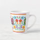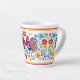 Si vous aimez beaucoup de couleurs, vous aimerez cette mignonne tasse inspirée de style boho ! Il dispose d'un magnifique design de deux fières coqs debout poitrine à poitrine. Un coq est de couleur rouge, vert, violet rose et noir, l'autre rose, rouge et noir. Les images du coq sont encadrées d'images de fleurs de couleur brillante en rouge, or, jaune, bleu et vert. La motif est alignée en haut et en bas avec des lignes rouge et or assorties.