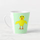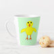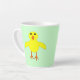 Cette magnifique tasse en latte présente une adorable image d'une mignonne petite poussette de Pâques jaune aux yeux noirs beady, aux pieds orange et à un bec orange large ouvert. Ce design charmant sera apprécié par les adultes et les enfants.