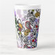 Colorful Tangle est de retour dans la Mug et une collection Card. Conception linéaire colorée sur une tasse de café de grande taille. Une partie de la série "Mug and Card", où vous envoyez une carte au express vous-même à une personne (les cartes sont adorables, mais rarement gardées pour toujours), alors envoyez-leur aussi une tasse correspondante, afin qu'ils se souviennent de la carte et de vos mots pour eux, chaque fois qu'ils utilisent la tasse. motif de ligne, segment d'un mandala, centre de fleurs se ramifiant en feuilles noirs et blancs, avec des éclats de rouge, jaune, violet, orange et vert.