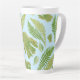Tasse Latte Couleur Bleue Feuille Verte. Motif feuille
