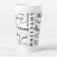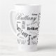 A crafted typography Latte Mug with the custom name "Brittany" in complimentary font styles over a background script. initials The black, white, and grey colors offer a timeless look, ensuring your drink remains yours because it has your name. It's OK to be possessive with your Lattes.