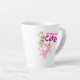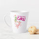 Un cochon heureux sur une tasse en latte. Utilisez "Personnalisez ce modèle" pour modifier le texte "Café, votre excuse quotidienne pour CAKE !" et créer un cadeau unique et customisé ; les changements de texte sont reflétés de part et d'autre. Une tasse élégante pour les amateurs de gâteau et de café, avec un cochon brillant, sous un gâteau de couche de teetering avec des éclats de glace verte et surmonté de bougies roses.