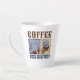 Un mignon cow-boy d'éléphant qui a eu un accident d'équitation, sur une tasse en latte en l'honneur du café. Utilisez "Personnalisez ce modèle" pour ajuster le texte "CAFÉ TOUT" et faire un cadeau unique et customisé; les changements de texte sont reflétés de part et d'autre. Doté d'un drôle d'éléphant qui balaie son casquette de dix gallons, dans des chaps en cuir et un mouchoir rouge. Dessin pour les amateurs de cowboy de l'ouest sauvage et les amateurs de café.
