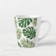 Monstère moderne vert foncé et or et mug en latte tropicale feuille de palme. Les éléments de ce magnifique design sont un motif en monstère vert foncé et feuilles de palme avec contour or et votre monogramme dans un cadre.