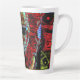 Sip your favorite drinks in bold style with this Latte Mug featuring Frequency Serpent. A serpentine red structure curves vertically across the mug, marked by circular elements resembling vibrational cores, while horizontal bands of blue, green, and white flow in the background like waves of data. The interplay of intense colors and curved forms creates dynamic tension, transforming this everyday mug into a functional canvas of digital abstract art. Perfect for coffee, tea, or gifting to those who love utility with creativity.