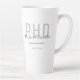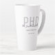 A graduation latte mug that feate the graduate’s name, field of study, and graduation date. The mug includes the name in a handwriting script font and a black and gray design. It's great as a keepsake or a party favor Simply add the graduate’s info, add this mug to your cart, and congratulations on this major milestone ! Graduate Keepsake Black Gray Nom Degree PhD Latte Mug Holidayday Design ©Melissa Patton