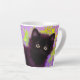 Latte Mug avec un chaton noir Gustav Klimt ! Cette beauté aux yeux larges pose dans un champ vert de fleurs violettes. Un cadeau bien pensé pour les amateurs d'art amoureux des chats et autrichiens !