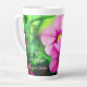 Cette tasse en latte de 17 onces présente une image de fond de fleurs de Coréopsis rose, ainsi que le verset biblique des Hébreux 13:8 qui dit : "Jésus-Christ est le même hier, aujourd'hui et pour toujours." La tasse est légère et confortable à tenir et est à la fois lave-vaisselle et micro-ondes coffre-fort. N'hésitez pas à me contacter par Zazzle si vous avez des questions sur cette tasse ou souhaitez aider à transférer cette conception à un autre article. Je suis heureux de vous aider à faire en sorte que l'image et le libellé s'adaptent correctement.