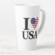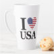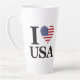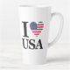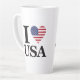 Savourez votre latte, votre thé ou votre chocolat chaud préféré dans le style avec cette élégante tasse en latte "I ❤️ USA". Son design élégant et haut met en valeur l'emblématique graphique "I ❤️ USA", avec le drapeau américain dans un coeur. Parfait pour des matinées douillettes, des fêtes patriotiques ou comme cadeau réfléchi pour un Américain fier, cette tasse est un moyen idéal pour combiner votre amour pour les boissons et le pays.