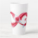 Infinity symbole of continuous stream of red pouring into glass glass glass on white background.