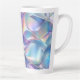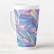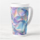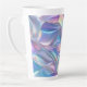 Un design géométrique métallique, bleu, orange, or et violet irisé, parfait pour une tasse en latte.