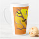 Profitez de votre café dans cette tasse en latte "Spooktacular". Ce thème de l'halloween présente une pleine lune jaune vif sur un arrière - plan orange, avec une branche d'arbre et trois chauves-souris au premier plan. Le texte "Happy Halloween" peut être customisé. Le design entoure la tasse.