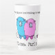 Deux moutons caricaturaux très mignons de couleur rose et bleu, chacun avec une boule de fil, décorent cette grande tasse en latte. Il a les mots, Knit one, purl one, et peut être personnalisé avec votre nom. C'est une jolie tasse pour un tricoteur.