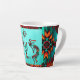 C'est un "One of a Kind" unique Mug en latte Kokopelli Sud-Ouest! Deux Kokopelli sud-ouest en Turquoise, Orange et Noir Jouant la Flûte et Dansant autour d'un Cactus sous le soleil...sur un Arrière - plan turquoise ! Design D'Art Original Par L'Artiste Kerry Miller.