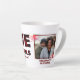 Pretty LOVE JAMAIS ÉCHOUÉ Christian Photo Latte Mug avec un TEXTE PERSONNALISABLE. Le texte principal se lit : L'AMOUR DE DIEU N'ÉCHOUE JAMAIS, qui a l'arrière - plan d'une rose rouge. Le TEXTE PERSONNALISABLE LIT JAMAIS ABANDONNÉ, NE S'EXÉCUTE JAMAIS, que vous pouvez remplacer par votre nom ou votre texte, par exemple. Heureuse Sainte-Valentin. Sur le devant, il y a une PHOTO PERSONNALISABLE que vous pouvez remplacer par votre photo préférée de vous et de votre être cher, et en dessous vous pouvez personnaliser votre salutation, par exemple ajouter une date spéciale. Il y a aussi des paires de coeurs d'amour. Cette tasse de photo chrétienne ferait un grand cadeau pour la Saint Valentin, Noël, anniversaires et anniversaires pour lui ou pour elle. Offres assorties disponibles.