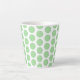 Cette petite tasse en latte est montrée avec un imprimé pois vert mignon.