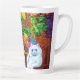 Latte Mug mettant en vedette la peinture animale de Louis Wain Master of Cat College (1860-1939). Un chat blanc réfléchi aux yeux bleus saisissants se tient à côté d'un assortiment vibrant de belles fleurs. Le majestueux collège de chats se dresse dans l'arrière - plan sous un ciel rose et bleu. Un cadeau merveilleux pour l'art amoureux des chats et anglais.