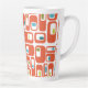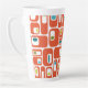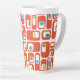 Cette grande tasse présente un design moderne du milieu du siècle de rectangles orange avec des rectangles blancs et des ovales verts et bleus à l'intérieur.