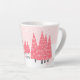 Cette tasse de latte à motifs de Noël peut être personnalisée avec votre monogramme ou votre nom. Arbre de Noël rose et blanc de style abstrait moderne, parsemé de neige sur un arrière - plan monochromatique rose. Disponible en deux tailles et est une torsion mignonne pour l'auberge de vacances ou le café.