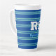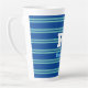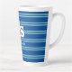 Tasse Latte Monogramme & nom en gras, Lt Lignes Turquoises sur