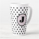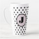 Cette tasse en latte présente un motif de points noirs sur un arrière - plan blanc avec un monogramme personnalisé encadré sur un arrière - plan rose pâle. Cliquez sur Personnaliser ce Modèle pour personnaliser facilement le monogramme et customiser plus loin les couleurs, la police et ajouter du texte, si vous le souhaitez.