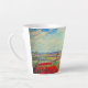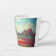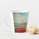 Latte Mug avec la peinture de la fleur et du moulin de Claude Monet. De beaux champs colorés de tulipes rouges, roses et jaunes à côté d'un moulin et d'une maison en Hollande. Un grand cadeau Monet pour les amateurs d'impressionnisme et d'art français.