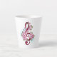 Pink treble clef with delicate, detailed pink Japanese cherry blossoms against white background painted over with light blue paint Blooming pink sakura.