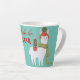 Cute llama avec un casquette péruvien, foulard d'hiver et sapin de Noël sur le dos. Le texte "Fa la llama" peut être facilement customisé avec des modèles. Art et design par Mira