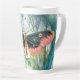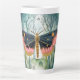 Un délicat papillon rose et brun contre l'arrière - plan d'une mystérieuse forêt bleue et verte.