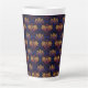 Le produit est décoré d'un motif de motifs répétitifs, inspiré d'un design classique de style baroque. Le motif central ressemble à une fleur de lis stylisée ou à un panache élégant, rendu dans des tons or, rouge et orange vifs avec des effets de dégradé. L'arrière - plan est d'un bleu marine profond, créant un contraste riche qui rend les éléments de design pop. Le motif est luxueux et royal, avec des détails symétriques et des courbes fluides qui lui donnent un aspect sophistiqué et intemporel.