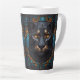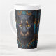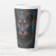 Latte Mug, Tasses en papier, Panthère noire dans un style d'art en mosaïque étonnant. Les yeux dorés intenses de la panthère frappent l'arrière - plan complexe de carreaux colorés et géométriques dans les tons bleu, orange et marron. L'artisanat minutieux crée une représentation vivante et vivante du félin majestueux, mêlant beauté naturelle et abstraction artistique. La technique de mosaïque ajoute profondeur et texture, faisant de l'image une merveille visuelle et artistique.