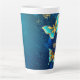 Tasse Latte Papillons d'or sur un Arrière - plan bleu