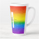 Prenez votre café du matin dans le style avec cette parties scintillant personnalisée et glam latte tasse. Le design chic rayé arc-en-ciel comprend des nuances de rouge, orange, jaune, vert, bleu et violet parties scintillant avec un monogramme initial en blanc et nom dans le script noir moderne pour vous personnaliser. Montre ta fierté !