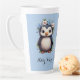 Tasse Latte Pingouins mignons Bleu Nom et initiales personnali