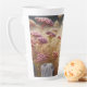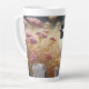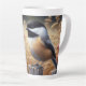 Un charmant poulet à carreaux noirs repose sur une clôture en bois vieilli avec des fleurs sauvages dorés et roses flous en arrière - plan